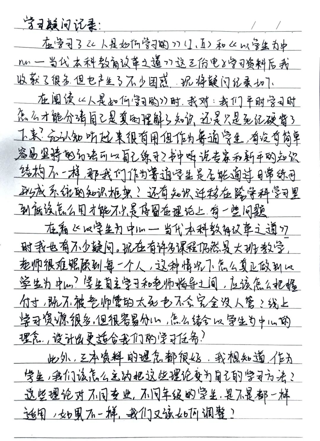在SC教学改革“以学生为中心”理念指引下,同学们研读《人是如何学习的:大脑、心理、经验及学校》时,围绕理论落地与专业适配提出疑问,好奇书中“主动建构认知模型”理论如何融入经管专业课程设计、避免理论与实操脱节,如何打破机械记忆模式引导学生主动建构知识,以及书中认知规律与SC改革要义如何精准衔接以提升学习实效。