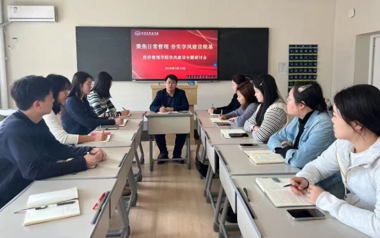 经济管理学院发展中心主任孙宇锋在会上围绕 “聚焦日常管理 夯实学风建设根基” 这一主题,结合同学们特点,对课堂出勤、早晚自习管理等重点工作作出具体部署,要求全体辅导员深入班级、深入学生,把学风建设责任落到实处。随后,全体辅导员就班级管理中的实际问题交流思路、细化举措,进一步明确工作方向,切实以精细化日常管理推动优良学风持续向好。此次会议为后续学风建设推进会的顺利召开做好充分铺垫。