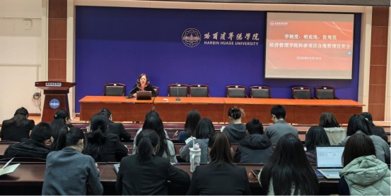 为进一步加强科研项目规范化管理,提升教师合规意识与风险防范能力,3月26日,经济管理学院在教一四楼会议室组织召开科研项目合规管理宣贯会。学院副院长李娟出席会议,全体无课教师参加会议。