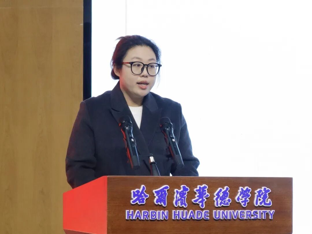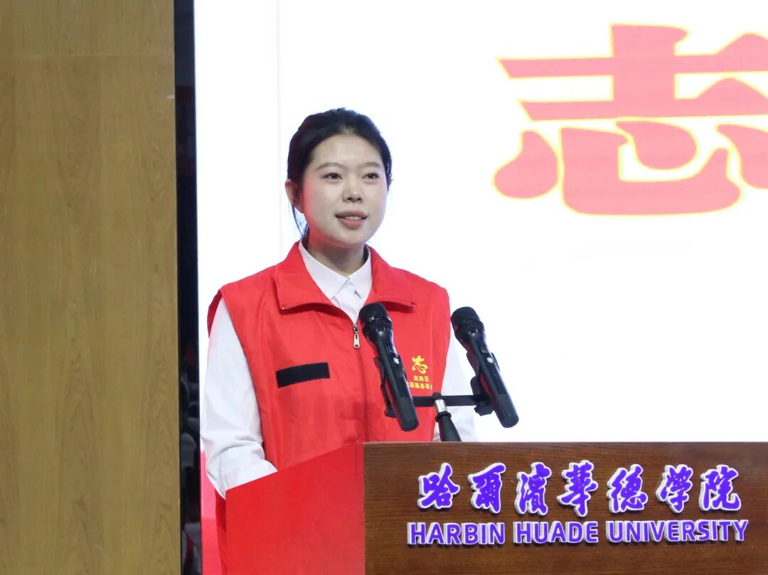 哈尔滨华德学院经济管理学院党总支副书记李娟致辞。她强调,党建是引领各项工作的根与魂,志愿服务是践行社会责任的生动实践,此次签约仪式将党建工作与志愿服务深度融合,为校地协同育人、学生成长成才搭建了重要平台。