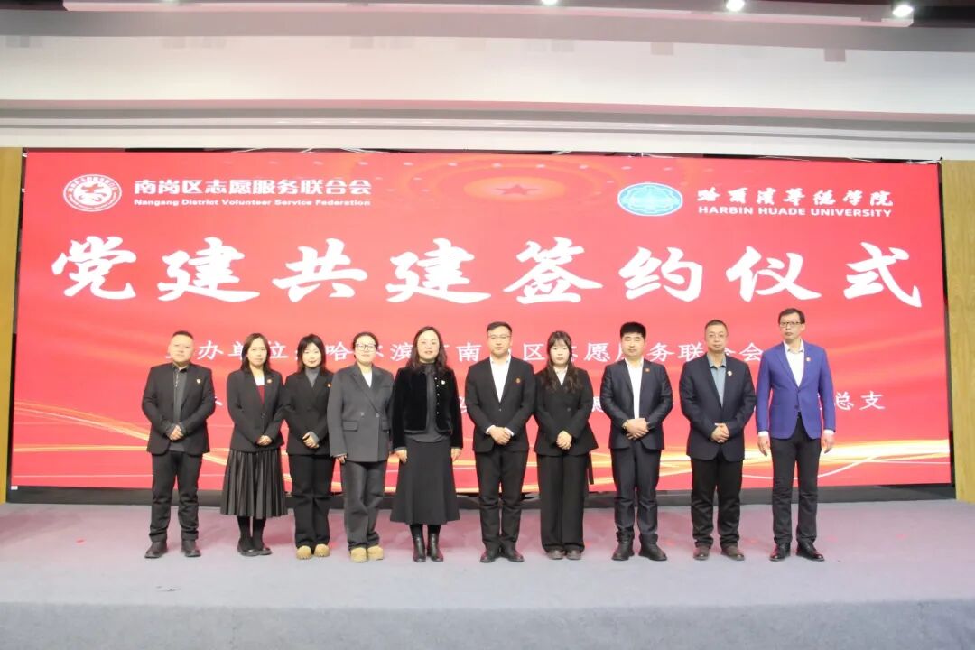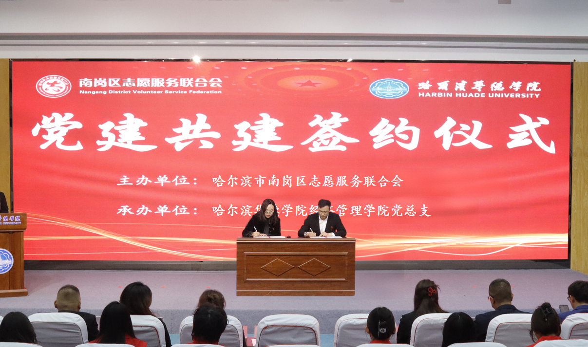在全场嘉宾的共同见证下,哈尔滨华德学院经济管理学院党总支副书记李娟与哈尔滨市南岗区志愿者联合会会长滕兆达共同签署党建共建协议,标志着哈尔滨华德学院经济管理学院与哈尔滨市南岗区志愿服务联合会的合作迈入规范化、长效化发展新阶段。