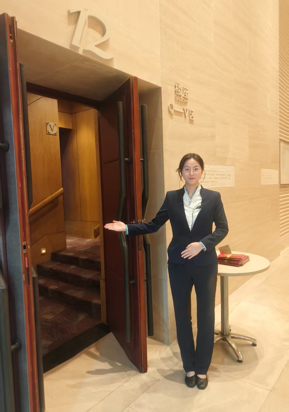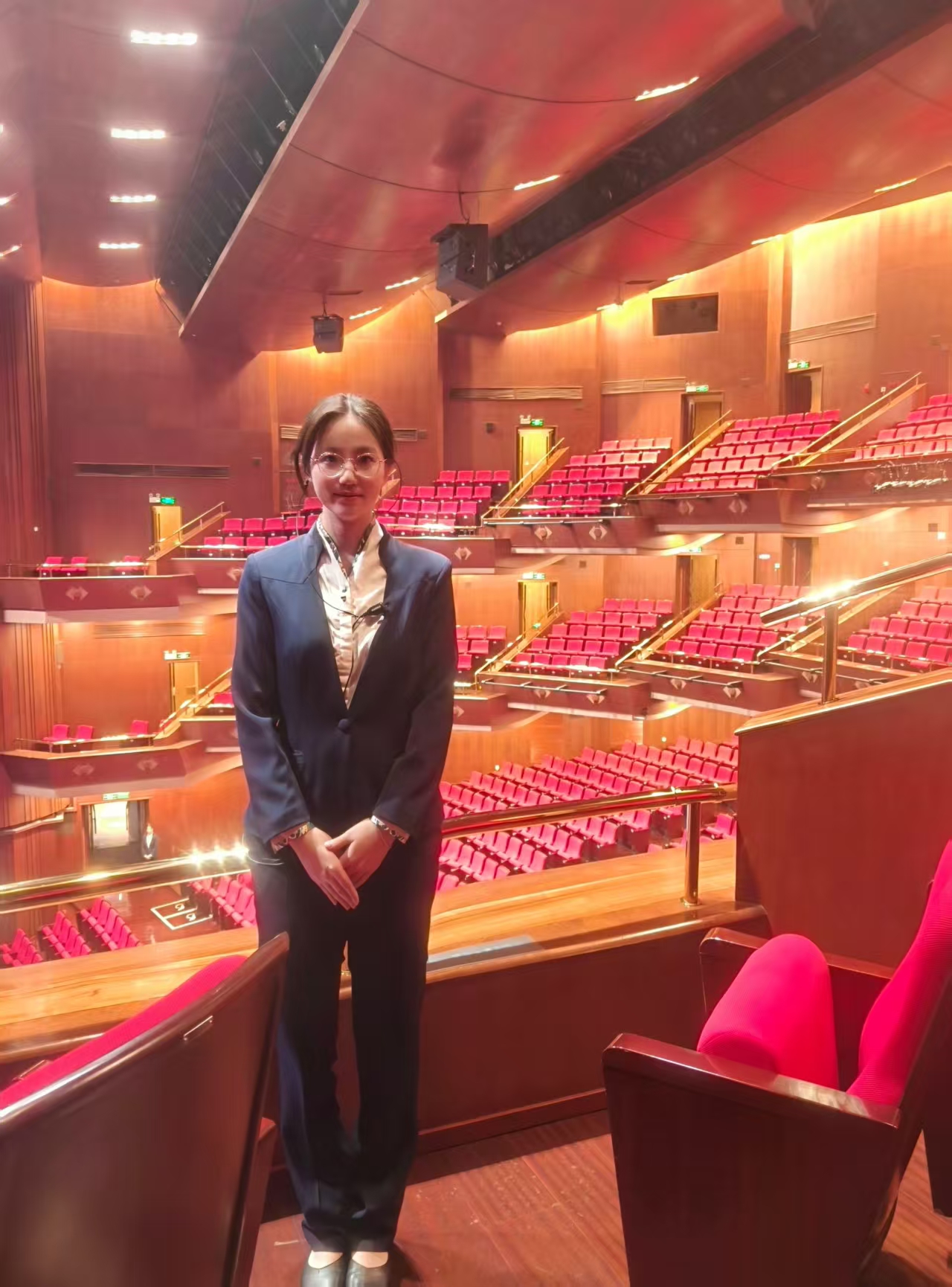 在中山市文化艺术中心,桑梓春晖队的徐鑫化身“剧院服务官”!她穿正装站好每一班岗,在12号门微笑引导观众入场,细致解答座位咨询;穿梭于剧院内场检查设施,用贴心服务守护观演体验。在文化场馆的实践中,她以专业与热情,为艺术演出的顺利开展保驾护航。