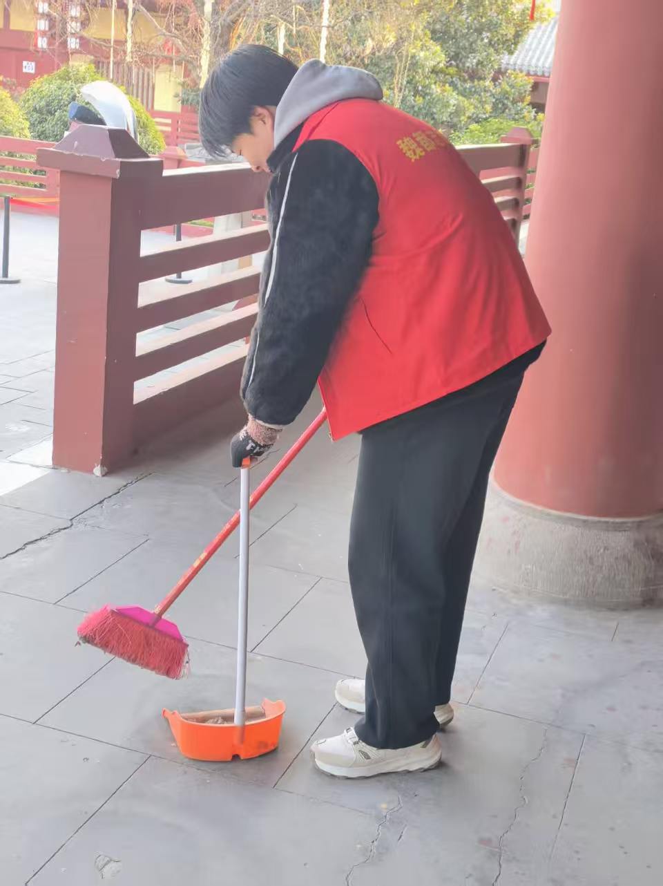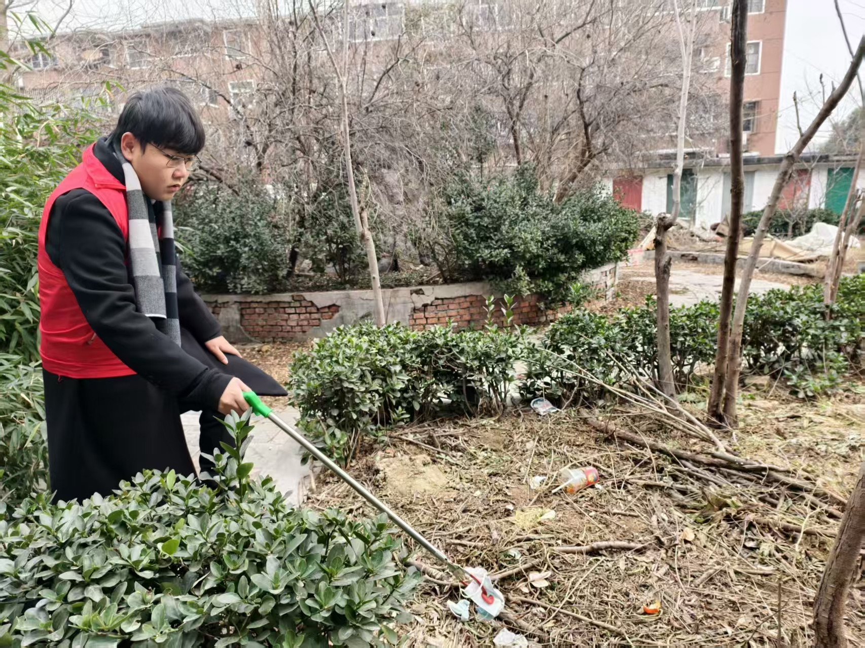 在郑州火车站社区,桑梓春晖队的陈鸿铭穿红马甲化身“环境守护者”!他俯身清理绿化带里的垃圾,细致清扫垃圾桶周边卫生,不放过任何死角。从环境整治到便民服务,他用点滴行动为居民打造整洁家园,在社区志愿服务中传递青春温暖,践行奉献精神。