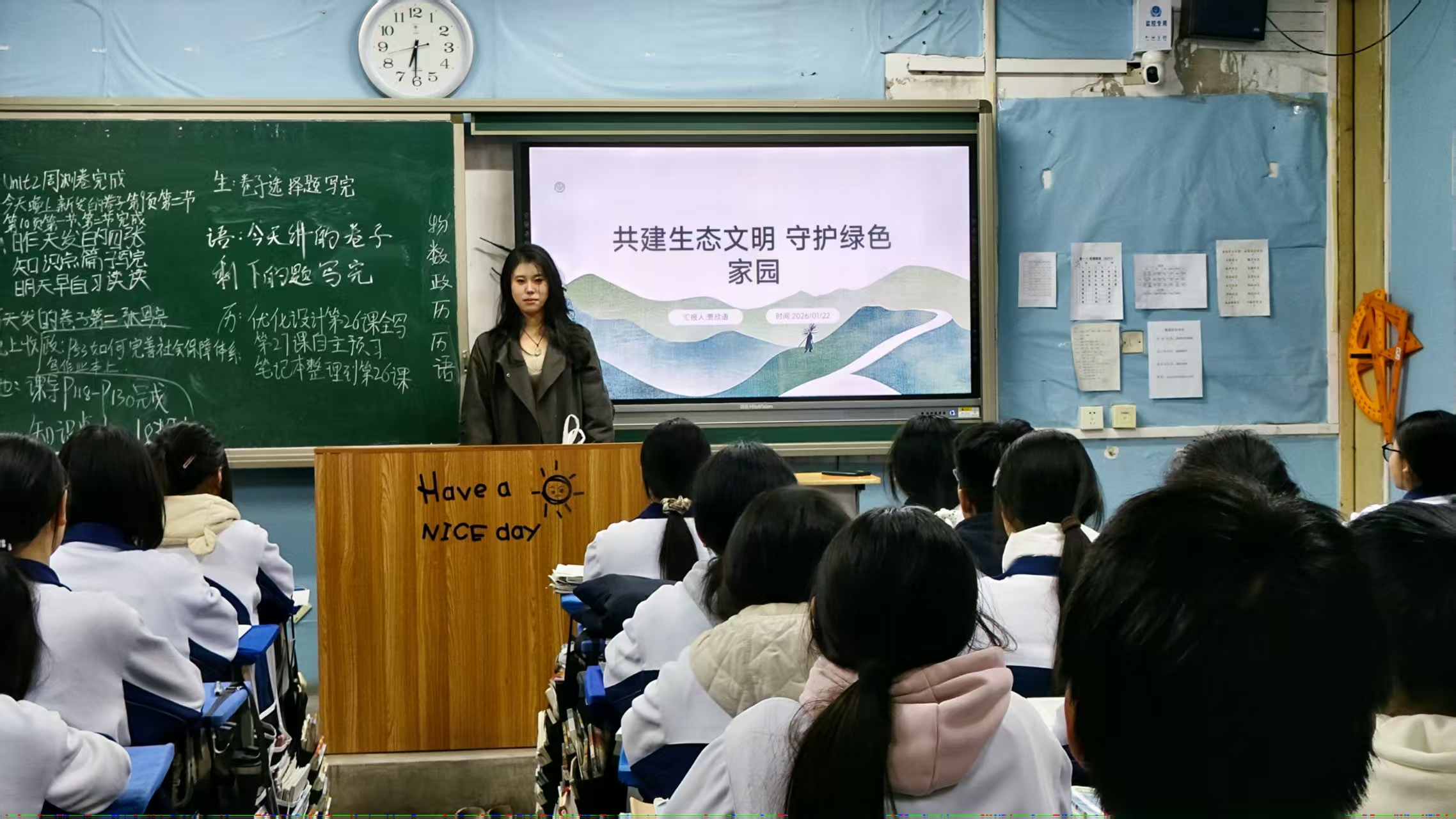 走进遵化市高级中学,桑梓春晖队的志愿者贾欣语以“共建生态文明,守护绿色家园”为主题开讲啦!她用直观的PPT对比,让同学们看到生态环境的变迁,将“环保从小事做起”的理念传递给每一位高中生。这场宣讲不仅普及了生态知识,更在青少年心中播下绿色种子,让青春力量为生态文明建设添彩。