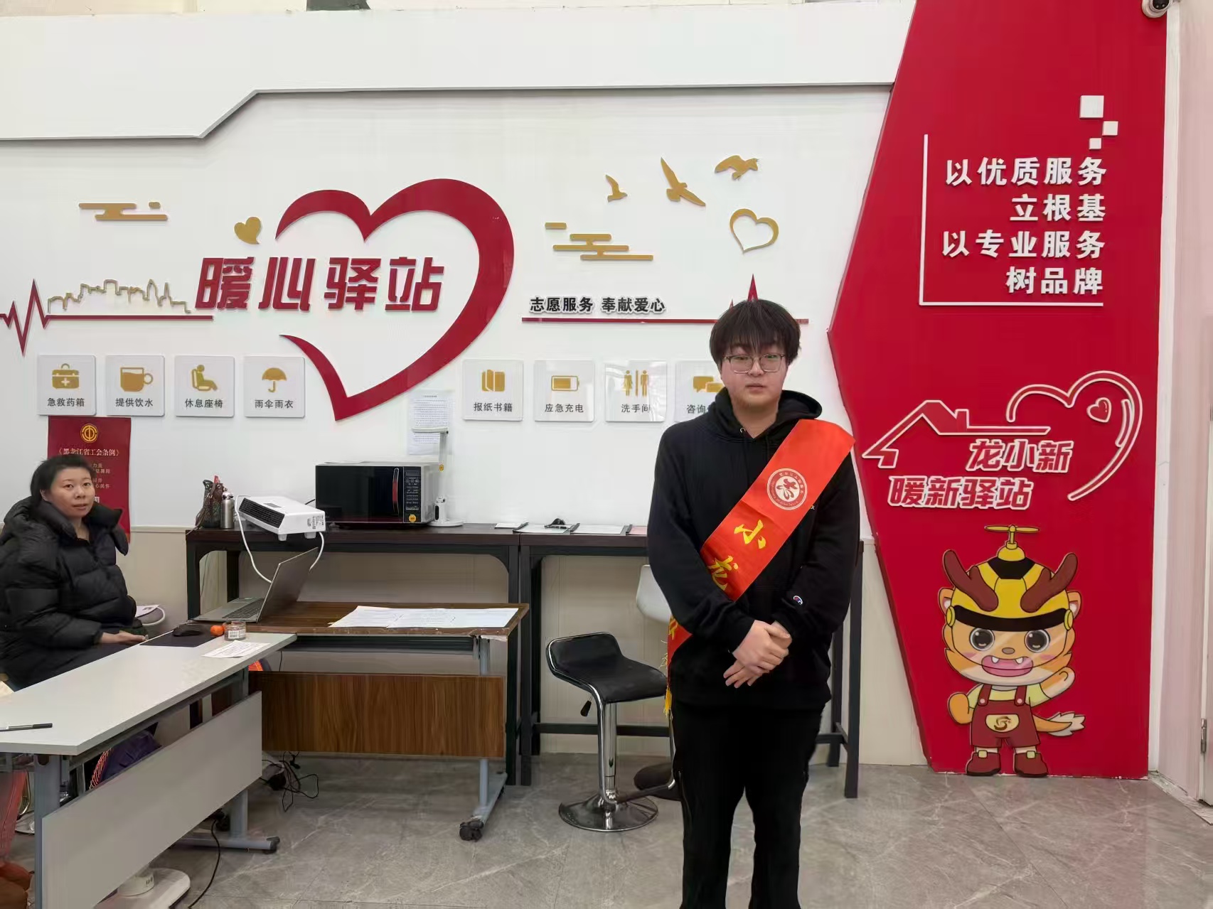 桑梓春晖队的陶澂烨同学于龙沙区团区委政务实习期间,参与“暖新驿站”运营与政务大厅帮办服务。负责驿站便民设施维护、群众需求登记,在大厅为老年人等群体提供办事引导、材料校对等精准服务。实践中提升了公文协作、沟通协调与应急处理能力,展现了大学生扎根基层、服务群众的良好风貌。