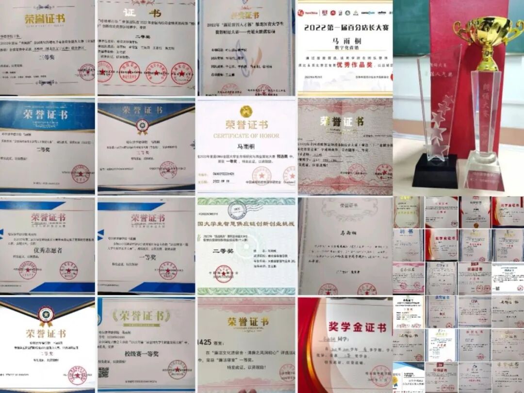 在竞赛方面,该生曾荣获2022年“链战风云”第五届全国大学生智慧供应链创新创业挑战赛二等奖、2022年(第二届)全国高校智慧物流虚拟仿真大赛全国总决赛二等奖、第四届”育知联杯“全国大学生智慧商务大数据创新应用大赛国赛三等奖等;