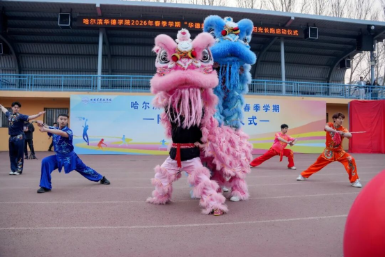 武术队传统功夫秀刚柔并济,一招一式尽显中华传统体育之美。喜庆欢腾的舞狮表演,行云流水的动作间传递着坚韧与力量,将现场气氛推向高潮。精彩纷呈的表演,勾勒出华德学子朝气蓬勃、奋发向上的青春群像,为本次阳光长跑活动奏响活力序曲。
