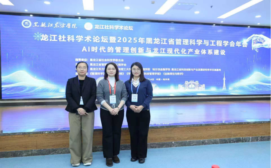 2025年12月14日,龙江社科学术论坛暨2025年黑龙江省管理科学与工程学会年会在哈尔滨隆重举行,省内外经管领域知名专家学者、高校代表齐聚,以“AI时代的管理创新与龙江现代化产业体系建设”为主题,共商龙江高质量发展大计。会议由省社会科学界联合会指导,黑龙江省管理科学与工程学会主办,黑龙江东方学院等单位承办,《管理科学》等5家学术期刊提供支持。经济管理学院院长李迪教授、系主任张雪副教授及教师武梦笛副教授应邀参会,与各界同仁共同探讨AI时代的管理变革与龙江产业发展路径。