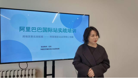 会议第一环节,举行“双导师育人,赋能国贸成长”专业建设研讨会。范丹经理首先介绍了阿里巴巴服务商的业务布局、发展优势及人才需求标准,重点分析了当前跨境电商、阿里巴巴国际站运营等领域对实操技能、职业素养、创新能力的岗位要求,并表达了与我校开展订单班联合培养、共建课程体系、共育实战型人才的合作愿景。国际贸易与俄语系主任刘永芝详细介绍了专业建设成果、人才培养定位与发展规划,表达了专业深化校企协同育人、推进资源共享、提升人才培养与行业需求契合度的强烈意愿,双方就人才培养模式改革、实践教学体系优化等内容达成初步共识。