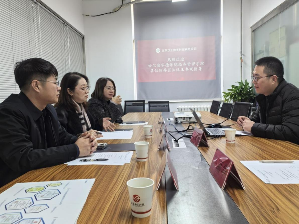为积极响应“访企拓岗促就业”专项行动号召,进一步深化产教融合、校企协同育人,精准对接数字科技领域优质企业人才需求,以名企订单班建设为核心抓手提升人才培养与就业服务质量,哈尔滨华德学院经济管理学院院长李迪、学生发展中心主任孙宇锋、国际经济与贸易系主任刘永芝、工商管理与大数据管理副系主任张雪组成专项走访团队,专程前往北京汉王数字科技有限公司开展实地考察与深度合作交流。汉王数字人事经理王建超、人事主管孙丽华热情接待了走访团队,双方围绕企业发展布局、人才培养需求、实习合作深化及名企订单班组建运营等核心议题展开全方位洽谈,就订单班建设达成多项关键合作共识。