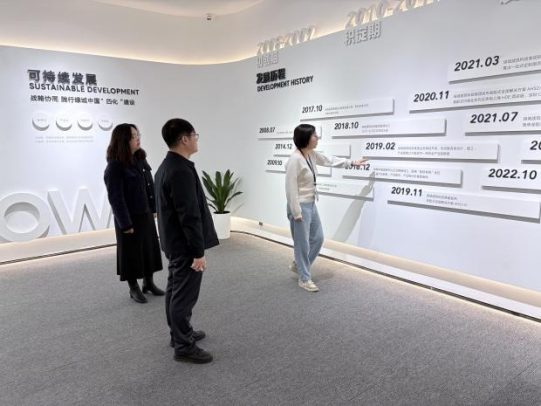 在张主管的引导下,学院代表首先参观了企业展示区,系统了解了绿城集团的产业布局以及绿城生活科技公司的发展历程、核心业务与创新成果。通过实地观摩与讲解,校方对企业在智慧生活服务、数字科技应用等领域的实践积累与技术实力有了直观而深入的认识。