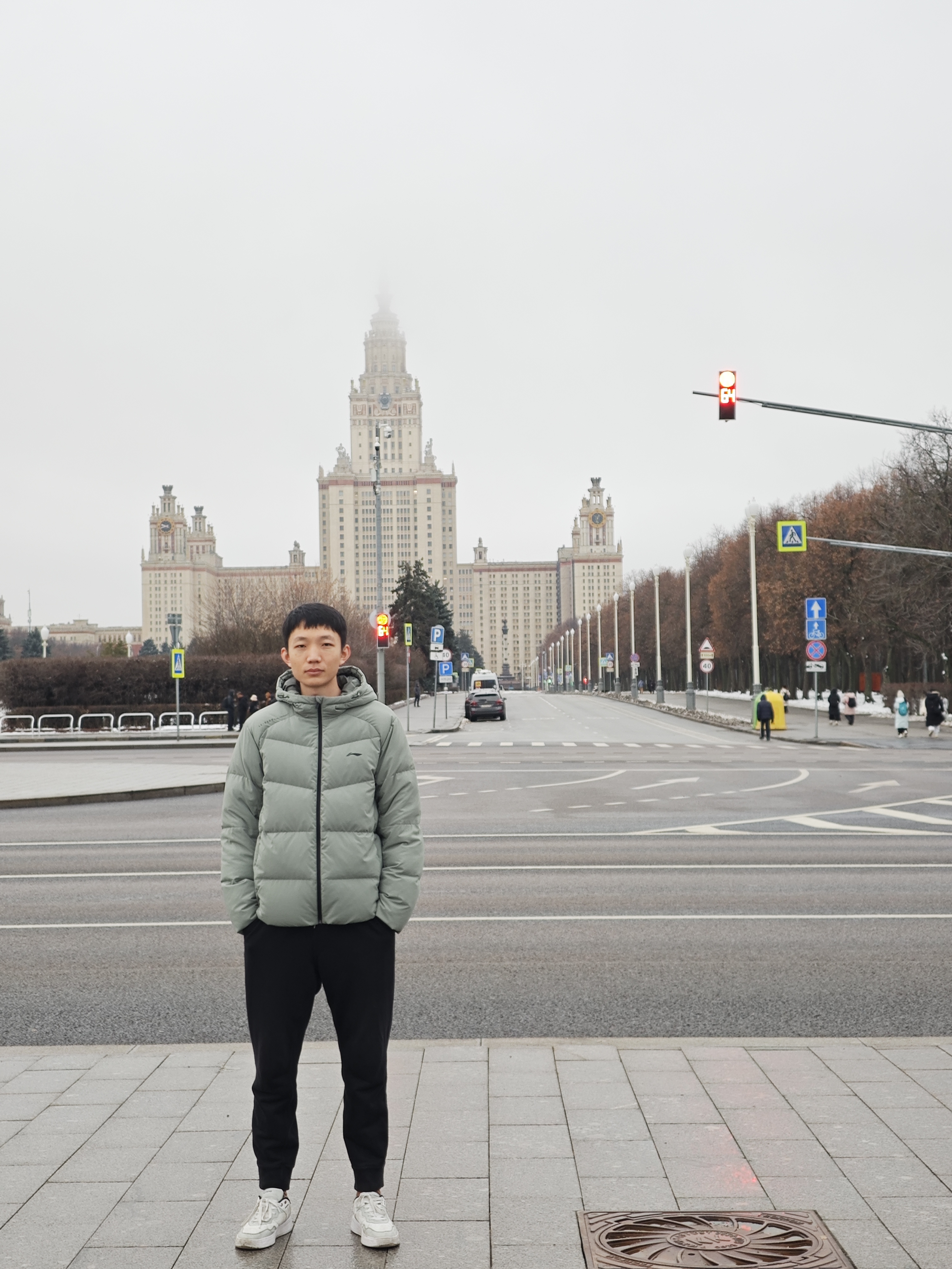 姜宇飞参加莫斯科展会期间在莫斯科国立大学主楼前留影