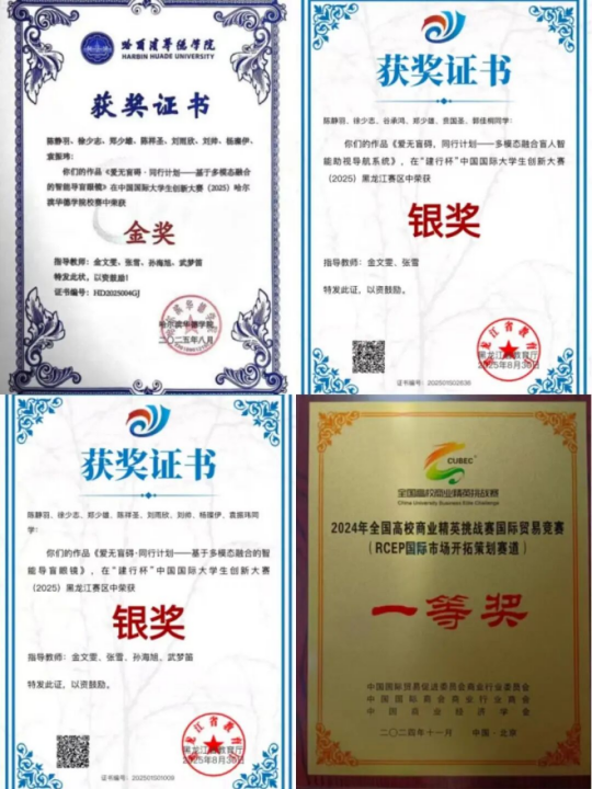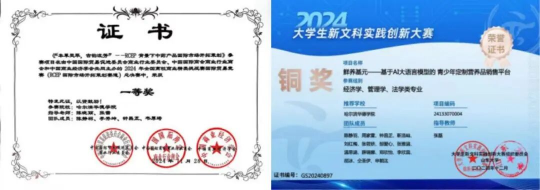 在2025年中国国际大学生创新大赛中,她作为项目负责人,运用生产运营、市场营销与统计学等专业知识,带领团队在高教主赛道与产业赛道中双线作战,一举斩获2项省级银奖及校级金奖。在纳入学科竞赛排行榜的2024年全国高校商业精英挑战赛RCEP国际市场开拓策划赛道中,她带领团队深入研究区域经贸规则,策划国际市场拓展方案,从众多参赛队伍中脱颖而出,摘得全国总决赛一等奖。