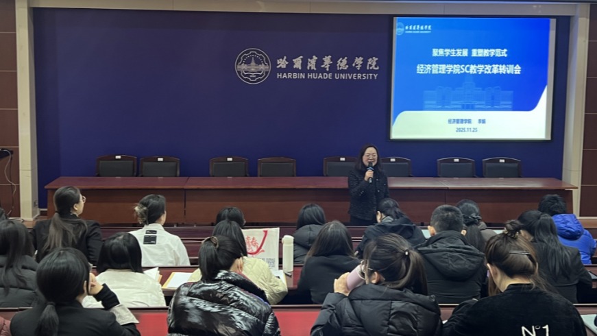11月25日,经济管理学院在教一四楼会议室召开SC教学改革转训会。会议由副院长李娟主持,院长李迪及全体教师共同出席。会议旨在精准传达集团组织的SC教学改革工作坊的核心内容,深入剖析SC教学范式的核心要义,夯实改革实践的基础,推动教学质量再上新台阶。