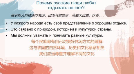 长期以来,基础阶段的语言课程容易陷入词汇、语法、句型的单向培养模式。而语言是文化的载体,旅游是跨文化交际的实践。《旅游俄语》课程的核心价值不应止步于“介绍国家与景点”,而应致力于搭建双向理解的文化桥梁,引导学生理解世界的多样性,并在此过程中坚定文化自信,涵养家国情怀。课程改革的核心,正是要将人类命运共同体、文明互鉴、文化使者的宏大叙事,如盐化水般融入城市导览、风景描述、文化阐释的具体教学环节中,实现从“语言工具”到“价值载体”的认知重构。